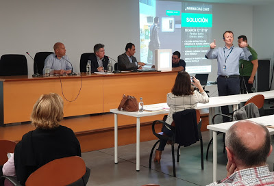 En nombre de Movistar Javier Blanco presentó el servicio de farmacia Digital iFarma, que permite a los clientes consultar desde el exterior de las farmacias los diferentes establecimientos de guardia, cómo llegar, los datos de contacto de la farmacia y el horario semanal, resolviendo el gran problema de dejar al farmacéutico la labor de imprimir y poner en el escaparate estas funciones.