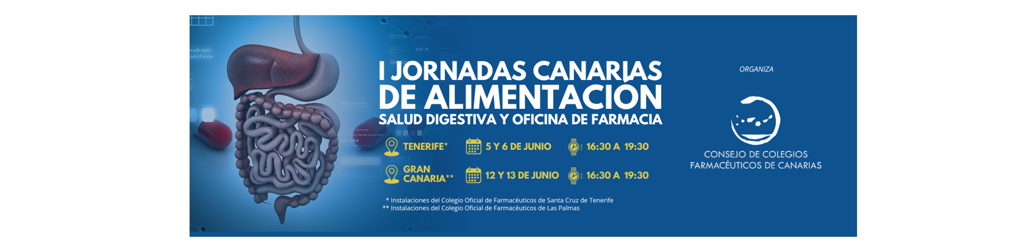 Las Vocalías de Alimentación del Colegio Oficial de Farmacéuticos de Santa Cruz de Tenerife y del Colegio Oficial de Farmacéuticos de Las Palmas organizan las I Jornadas Canarias de Alimentación: Salud Digestiva y Oficina de Farmacia.