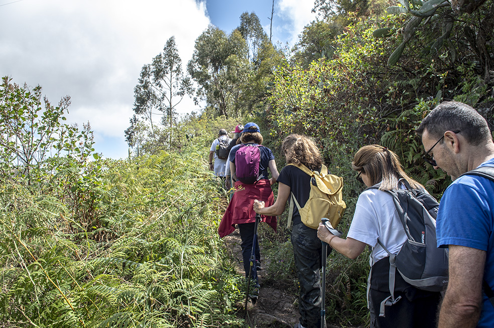 A medida que se hacía camino, pudimos comprobar como la vegetación se iba modificando, dejando paso helechos y otro tipo de plantas, hasta llegar a la carretera asfaltada y rodeada de eucaliptos que nos llevó al casco del municipio, en donde pudimos visitar la Casa-Museo Tomás Morales y compartir mesa y mantel con una comida excelente justo frente al ayuntamiento.