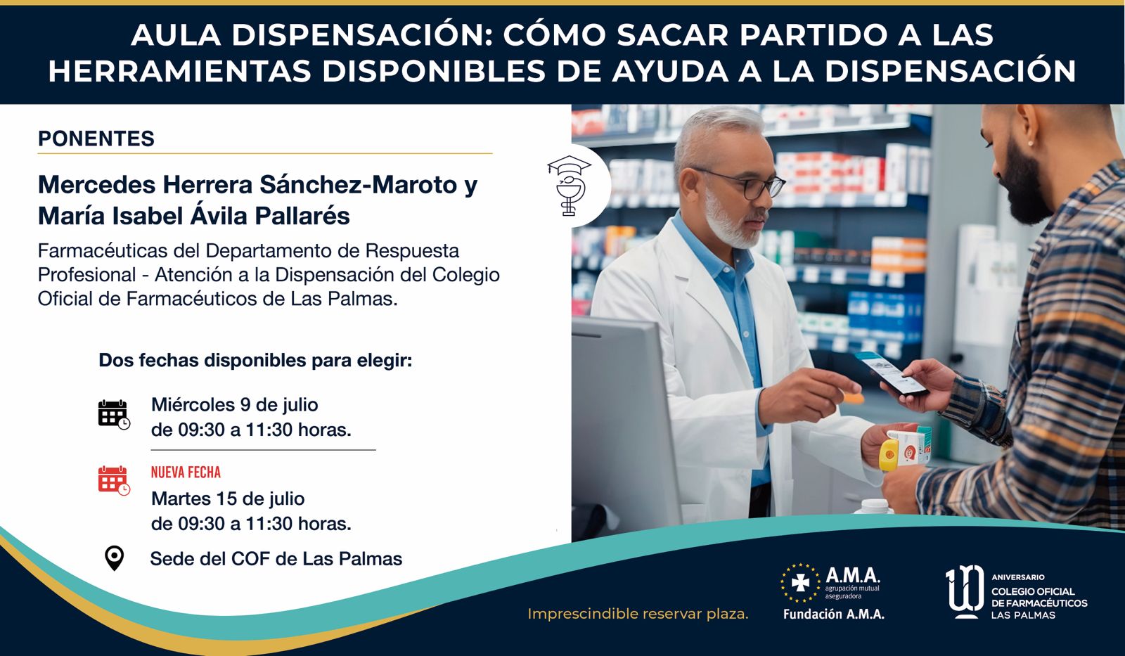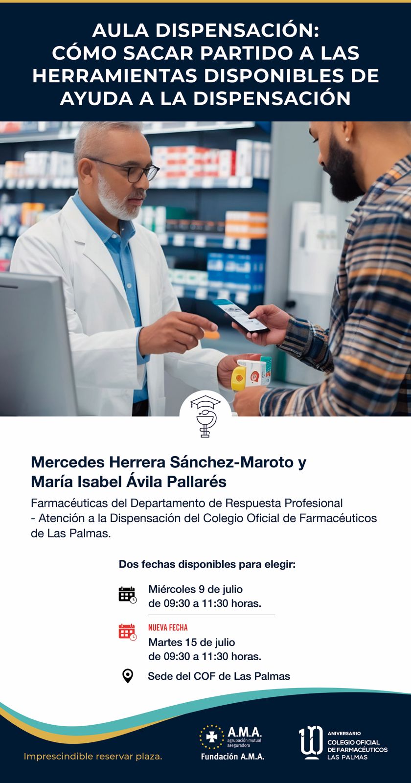 La formación será impartida por Mercedes Herrera Sánchez-Maroto y María Isabel Ávila Pallarés, Farmacéuticas del Departamento de Respuesta Profesional - Atención a la Dispensación del Colegio Oficial de Farmacéuticos de Las Palmas.