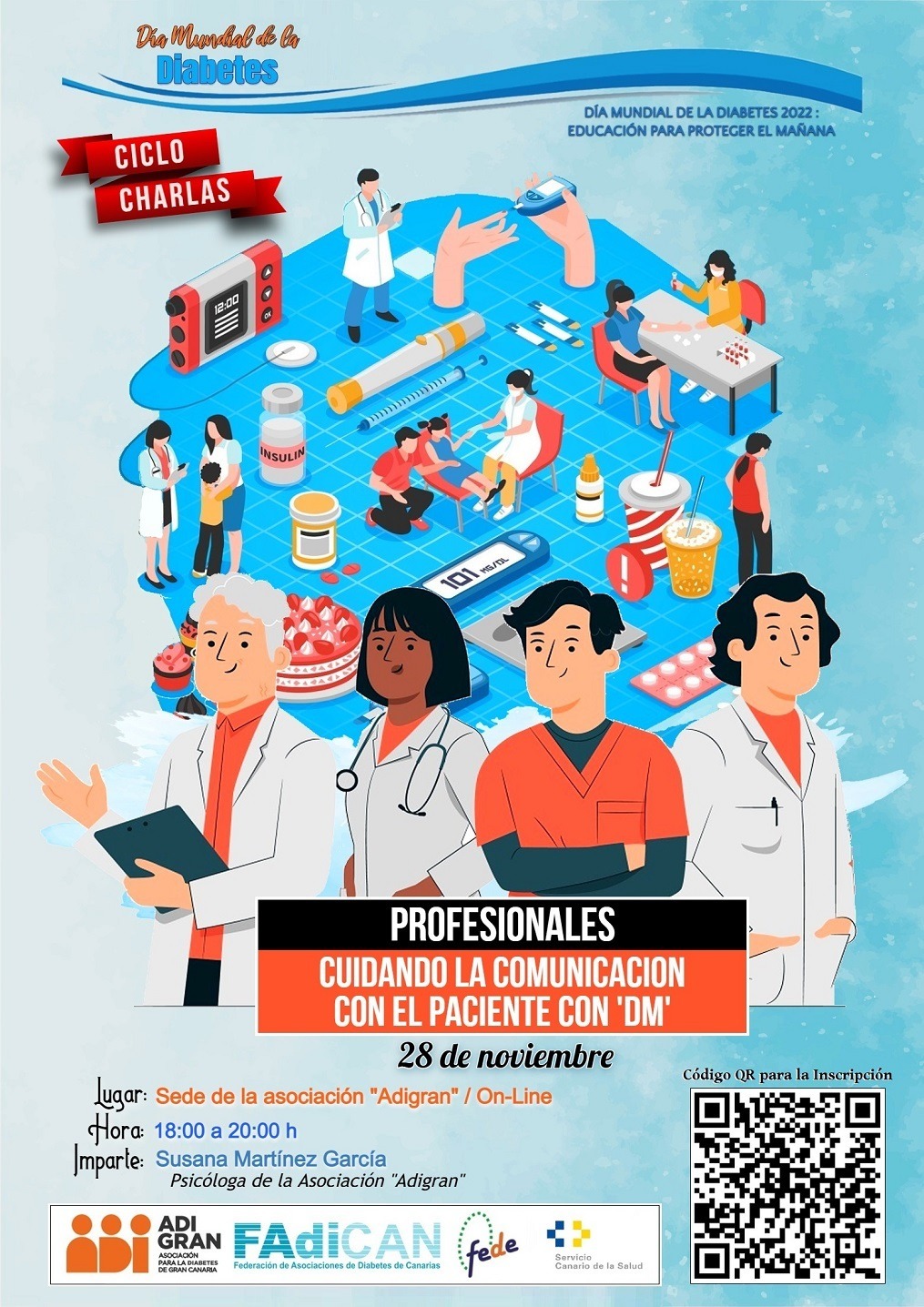 Dentro del ciclo de charlas y talleres que Adigran ( Asociación de diabéticos de Gran Canaria) está llevando a cabo en conmemoración  del Día Mundial de la Diabetes , te invitamos a asistir a una  charla-taller dirigida a profesionales sanitarios.