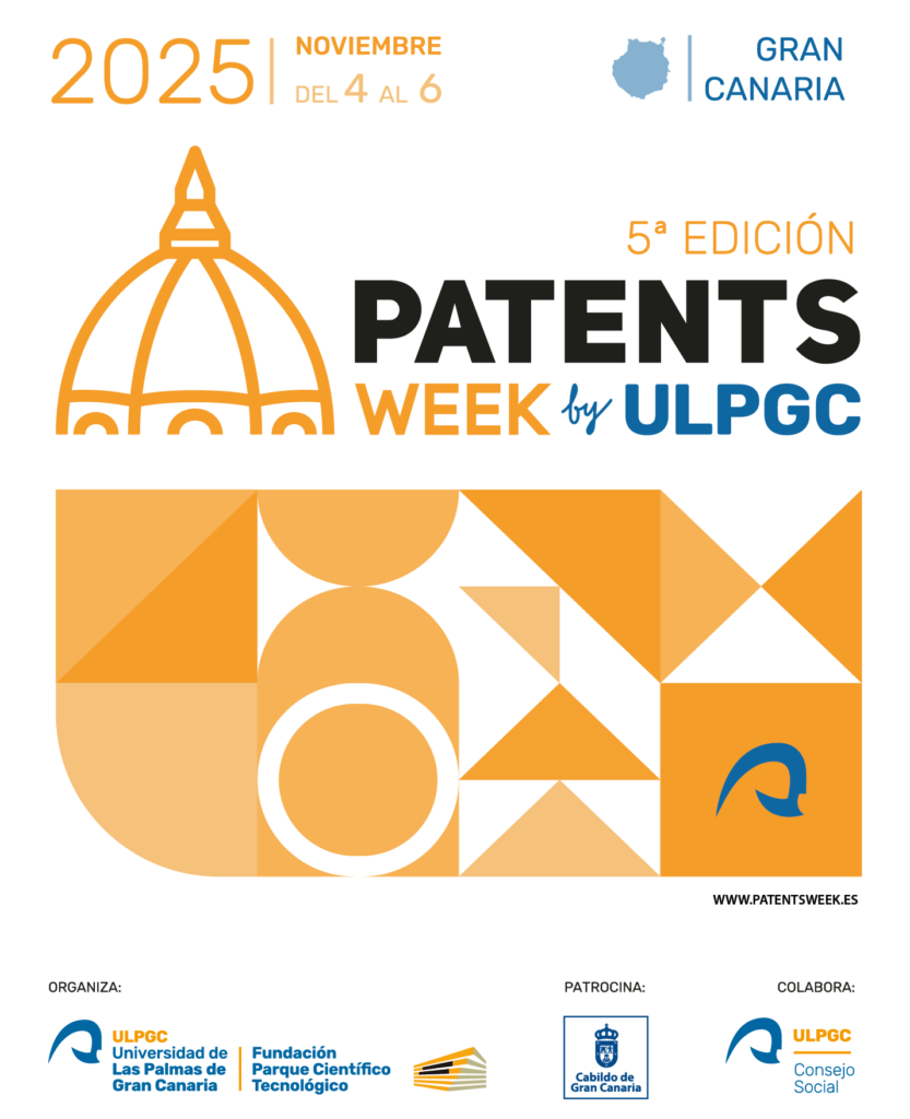 La Universidad de Las Palmas de Gran Canaria (ULPGC) y la Fundación Canaria Parque Científico Tecnológico (FCPCT) abren inscripciones para la quinta edición de Patents Week by ULPGC, evento pionero en España sobre propiedad industrial, innovación y transferencia de conocimiento, que se celebrará del 4 al 6 de noviembre de 2025 en el Auditorio Alfredo Kraus.
