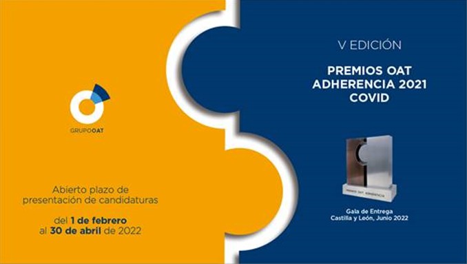 Con la intención de contribuir al reconocimiento público y poner en valor el esfuerzo realizado por todas las entidades y personas físicas o jurídicas del ámbito de la sanidad que, durante el año 2021, hayan desarrollado proyectos o iniciativas de mejora de la adherencia, dentro del territorio español,  desde el Grupo OAT nos comunican que se ha abierto el plazo de inscripción de candidaturas de la V Edición de los Premios OAT Adherencia 2021 Covid.