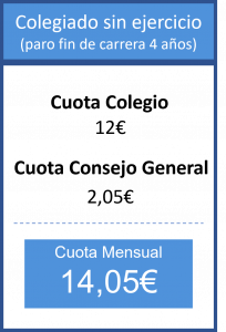 Colegiación: Se realizará con el primer recibo un cargo adicional de 180,30€ en concepto de alta.