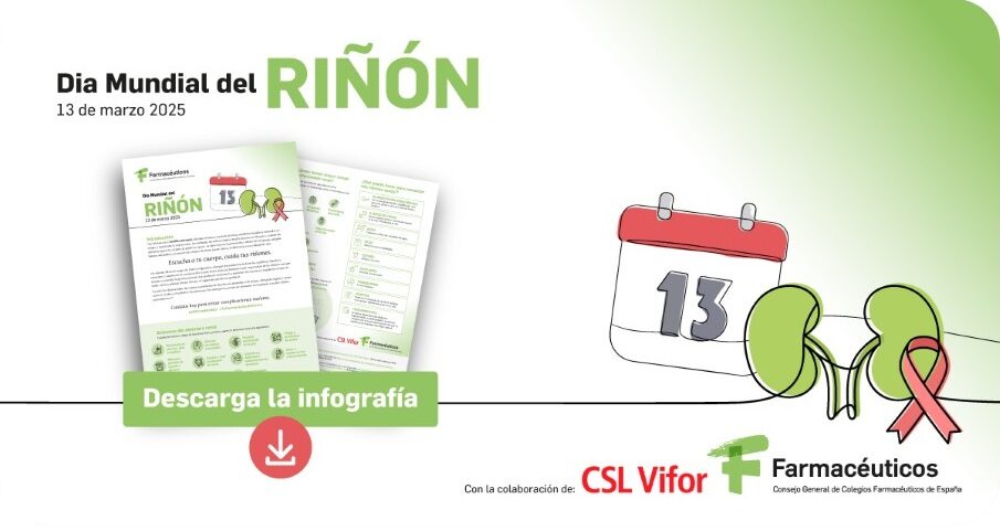 Con motivo del Día Mundial del Riñón, el Consejo General de Colegios Oficiales de Farmacéuticos, con el patrocinio del laboratorio Vifor, lanza una campaña para visibilizar la importancia de la salud renal y destacar el papel esencial del farmacéutico en la prevención de la enfermedad renal.