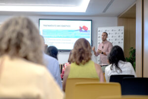 “Como sanitario más próximo y cercano a la población”, comentó la farmacéutica Elena Angulo en su exposición, “el boticario tiene tres labores fundamentales: detectar la sospecha, derivar al médico y hacer el seguimiento”.