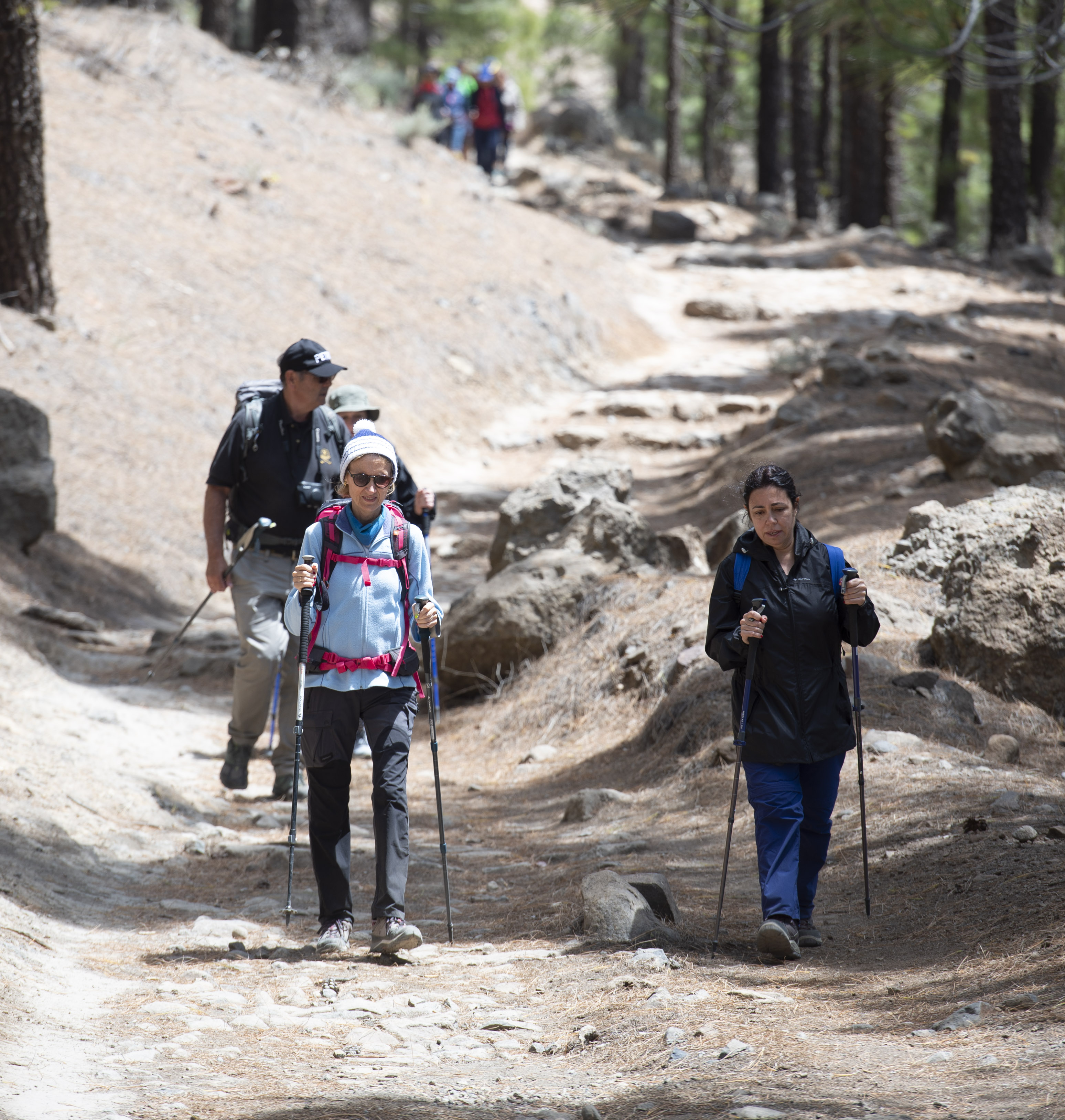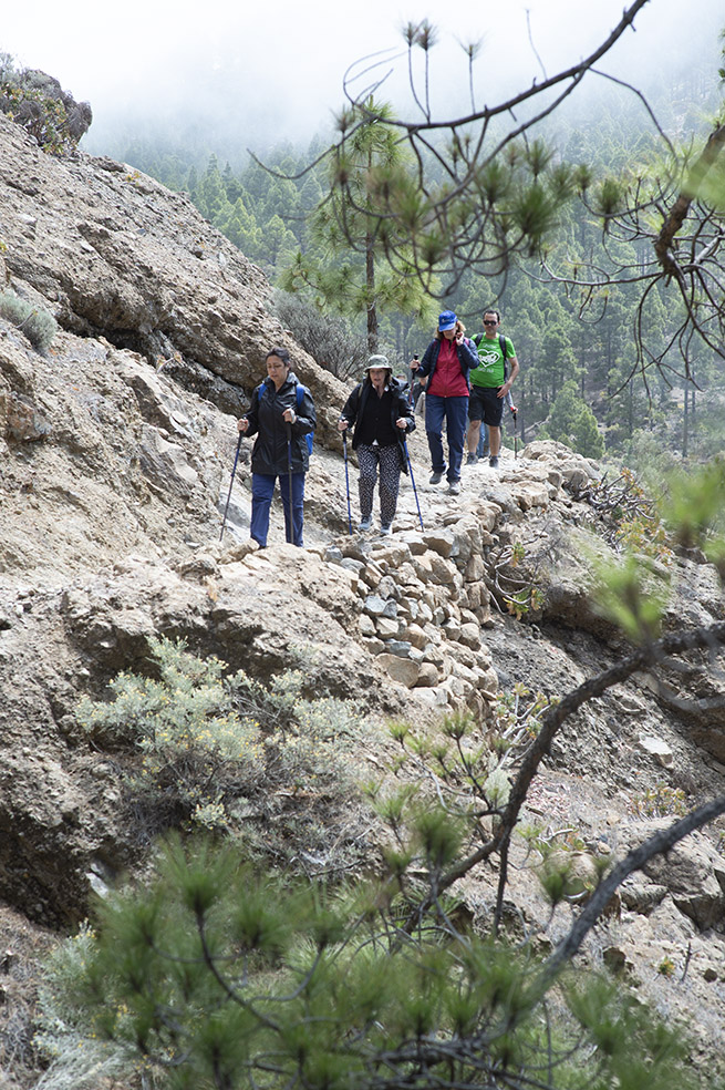 Estaba anunciado viento y lluvia, pero nadie había hablado de que, a las 10:20 horas de la mañana, la temperatura en el pico de Las Nieves (el segundo más alto de Gran Canaria) sería de 4 grados. Pero ni el frío ni la niebla hizo que el grupo de 16 personas que participó en la bajada desde la cumbre hasta Tunte (13 kilómetros de camino y uno de desnivel), se desanimara, y una tras otra comenzaron a descender por el estrecho camino que zigzaguea entre el mirador hasta la degollada de Los Hornos. La caminata, organizada por el Colegio Oficial de Farmacéuticos de Las Palmas, se celebró el 6 de mayo pasado.