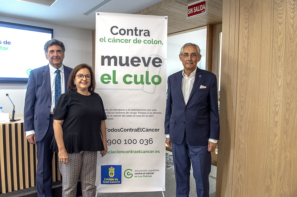 Los farmacéuticos de Las Palmas, sea cual sea su modalidad, asumieron hoy, Día Mundial Contra el Cáncer de Colon, el compromiso de informar sobre el cáncer de colon y promover la realización de las pruebas necesarias para su diagnóstico precoz. Durante la rueda de prensa en la que se presentó la campaña «Mueve el culo», que se celebró en la sede del COFLP y que contó con la participación de la vicepresidenta del Colegio, Margarita Benítez, el presidente de la Junta Provincial de la Asociación Española contra el Cáncer en Las Palmas, Fernando Fraile, y el director del Centro Oncológico Integral Canario de Hospitales Universitarios San Roque, Pedro Lara, Benítez manifestó que «nuestro compromiso es necesario profesional y humanamente, porque los pacientes son nuestros vecinos, a los que hemos tratado durante años, a ellos y a sus familias, y vemos y sentimos el deterioro que se puede sufrir por no hacerse una prueba a tiempo». Señaló también que «si económicamente es rentable la detección precoz porque siempre será mucho más caro el tratamiento, el coste que supone el sufrimiento y el desgaste físico y psíquico de la persona, no puede calcularse en dinero».