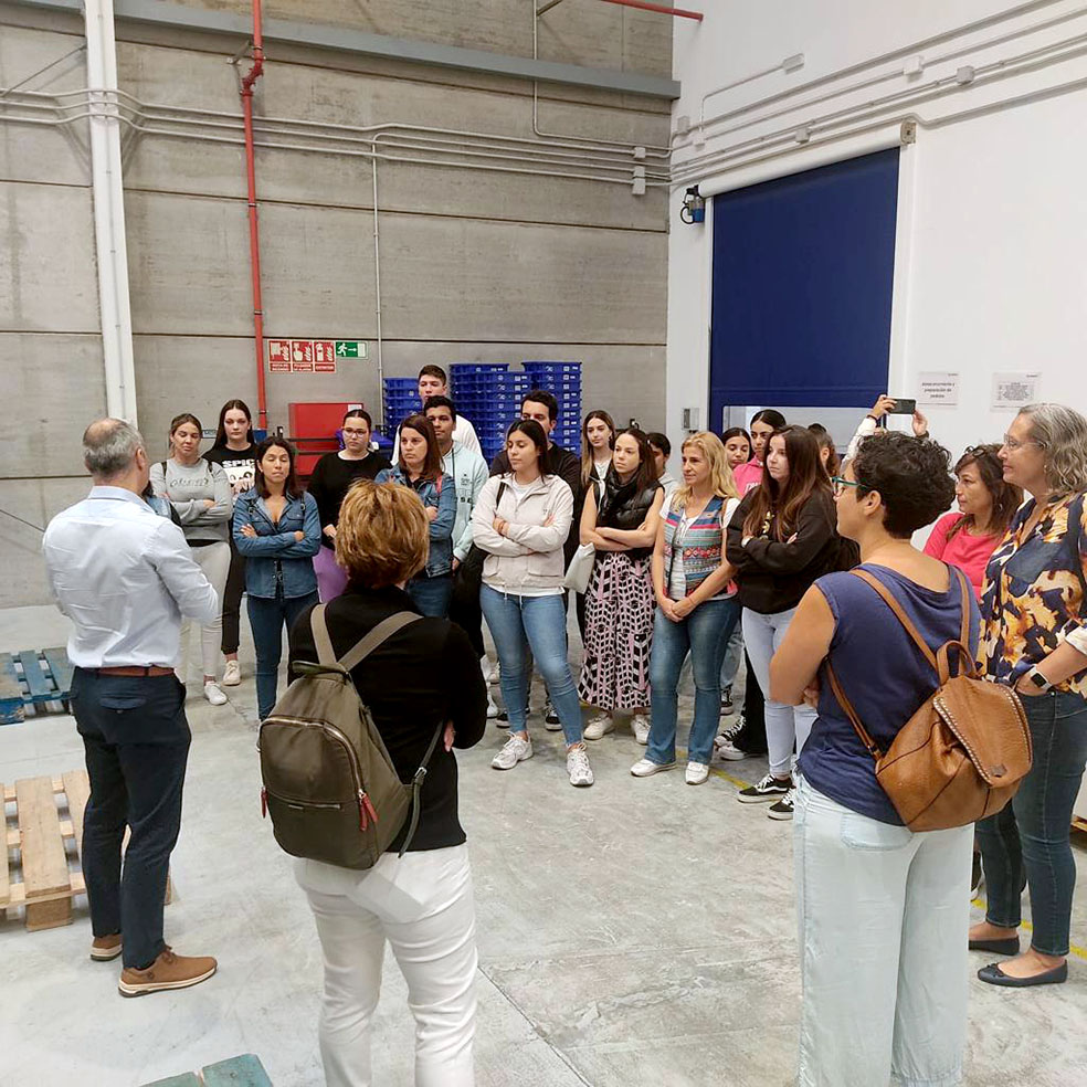 La parte teórica fue enriquecida con la muestra práctica, para lo que los estudiantes se desplazaron, acompañados siempre de Alicia Wildpret, al almacén de Cofarca en la isla conejera. Allí, de la mano de la directora técnica, Dolores del Nero, y del jefe de Producción del almacén de Gran Canaria, José Afonso, pudieron conocer los diferentes procesos que se desarrollan en la nave, que pudieron visitar con profundidad.