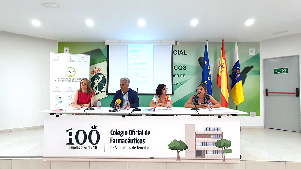 La campaña, alineada con el Consejo General de Colegios Farmacéuticos de España, ha sido presentada por Loreto Gómez, presidenta del Colegio Oficial de Farmacéuticos de Las Palmas y Manuel Ángel Galván, presidente del Colegio Oficial de Farmacéuticos de Santa Cruz de Tenerife y del Consejo de Colegios Farmacéuticos de Canarias. Además, han participado las vocales de titulares de Oficinas de Farmacia, María García, y Dermofarmacia, Silvia Alonso, del COF de Santa Cruz de Tenerife.