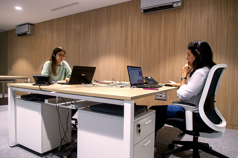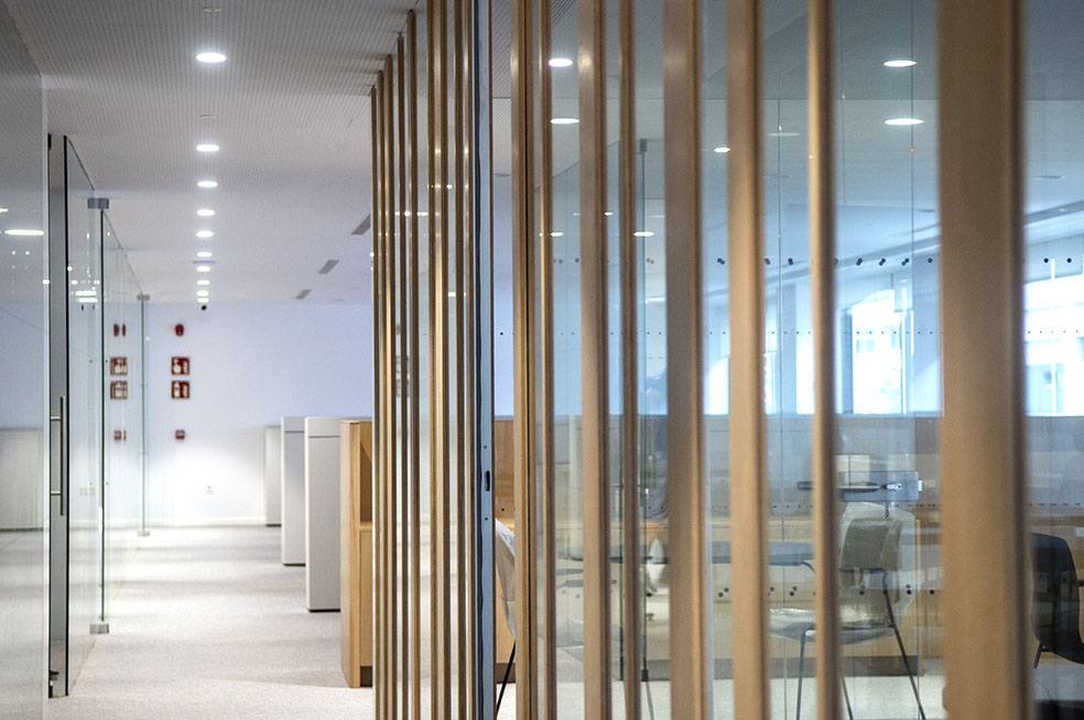 La nueva sede cuenta, además, con cuatro pantallas táctiles y otras dos pantallas smart view, así como con un sistema automático que regula la iluminación (toda LED) por zonas, según sea la intensidad lumínica de cada momento, facilitando así el ahorro energético y el cansancio de la vista.