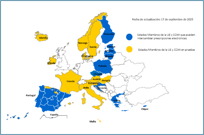 PAÍSES EUROPEOS QUE ACTUALMENTE PUEDEN INTERCAMBIAR PRESCRIPCIONES ELECTRÓNICAS (actualizado el 17/09/2025)